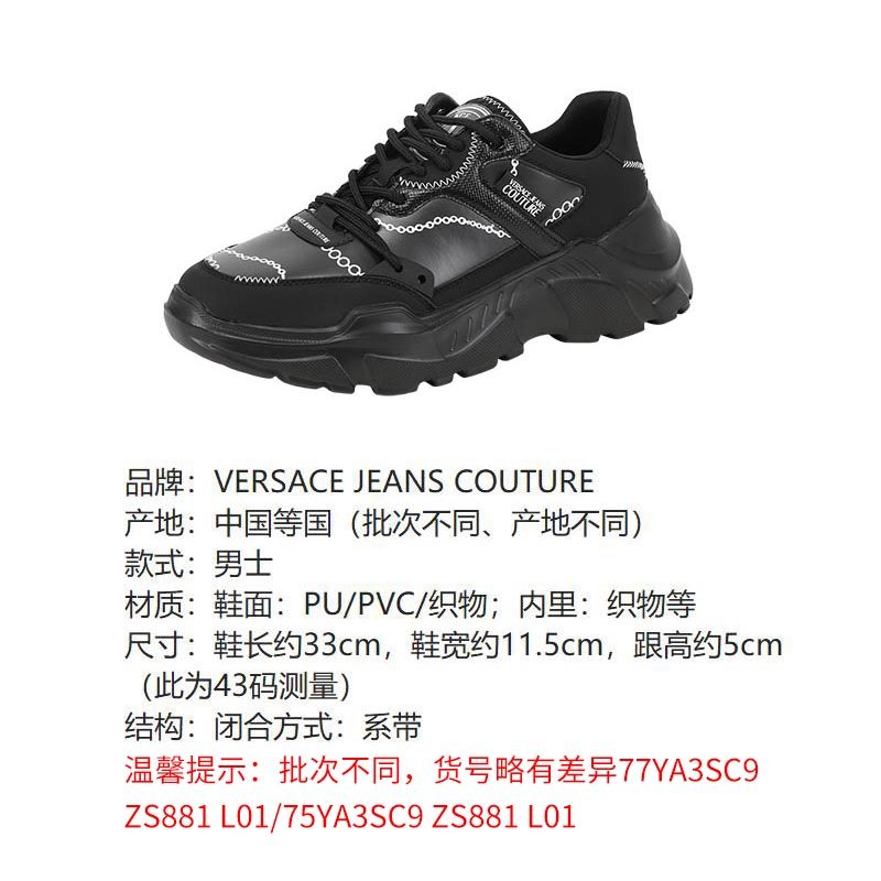 VJC范思哲 男士厚底老爹鞋系带运动休闲鞋 77YA3SC9 ZS881