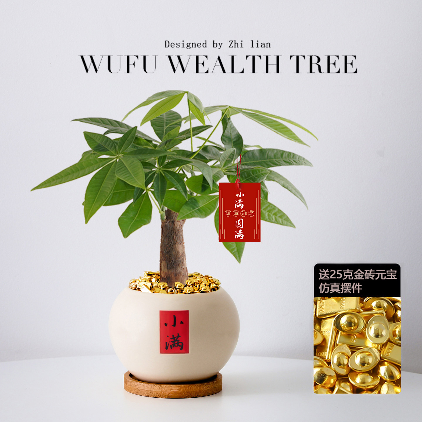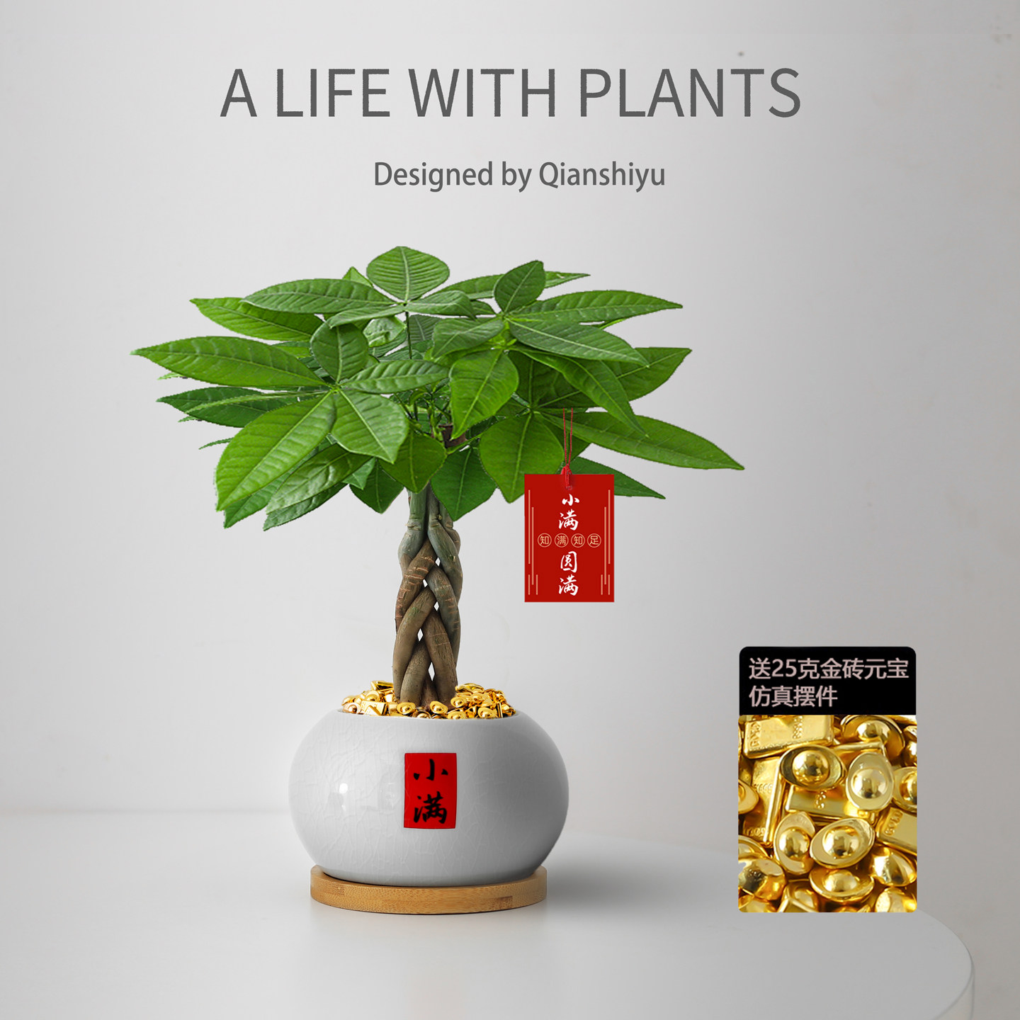 发财树小盆栽四季植物室内客厅中式禅意招财树绿植办公室桌面盆景