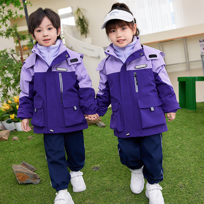 小学生校服冲锋衣秋冬季三件套幼儿园园服加绒加厚儿童三合一班服