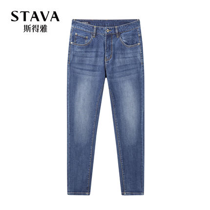 斯得雅时尚水洗修身牛仔裤男夏季新款轻商务通勤直筒中腰男士长裤