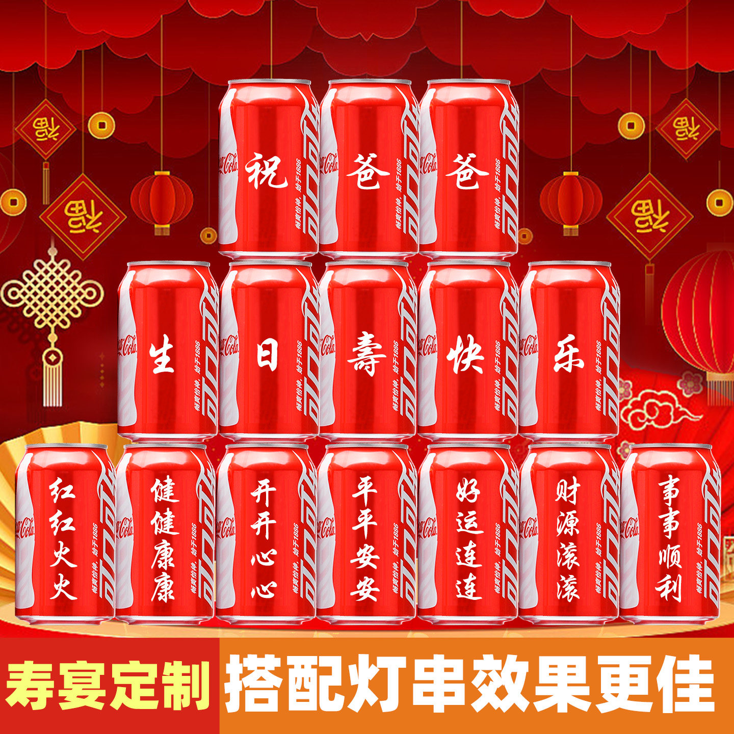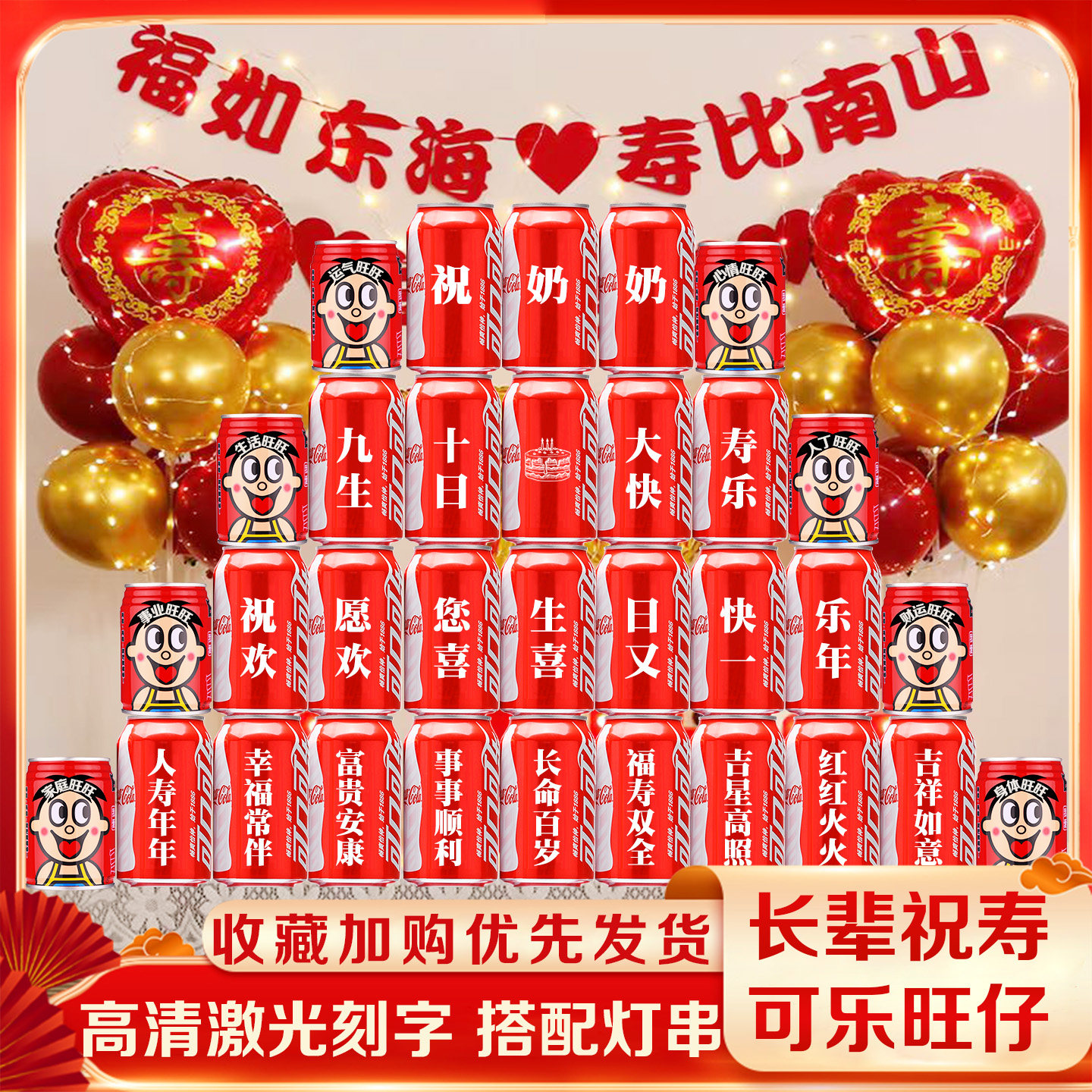 可乐定制祝寿送长辈生日布置装饰