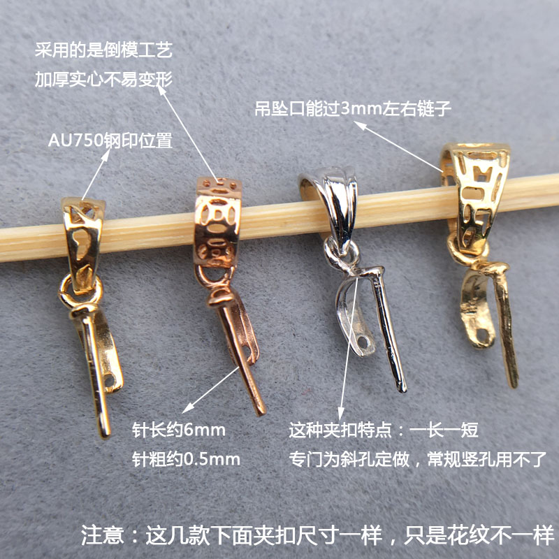18K金扣头万能项链卡扣斜孔观音佛公翡翠瓜子扣夹扣玉扣吊坠扣头