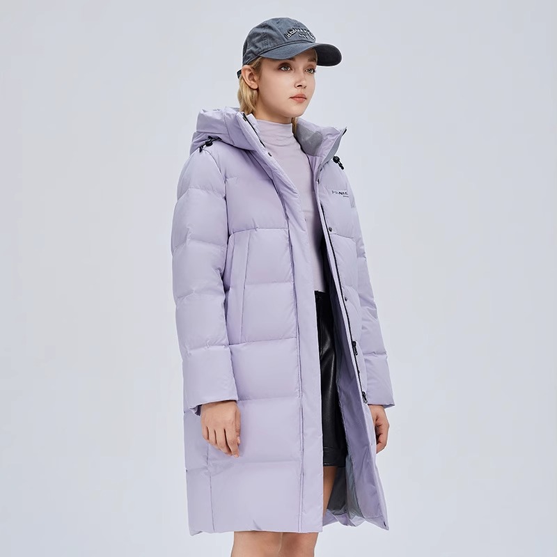 杰奥2025冬新款女士中长款连帽羽绒服纯色宽松加厚保暖外套商场款