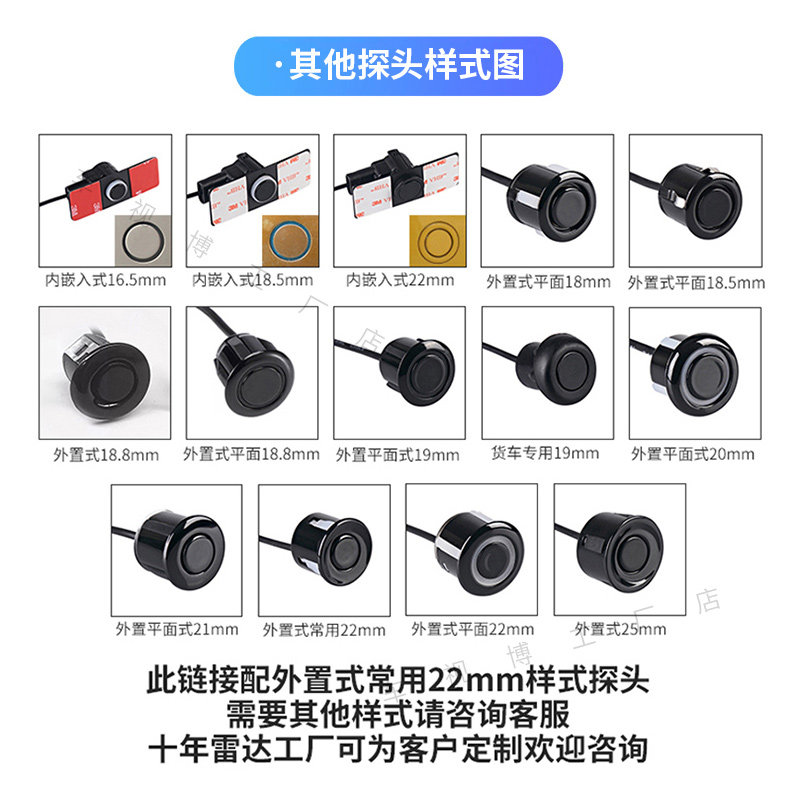 22mm通用倒车雷达探头颜色可配二狼神铁将军车视博传感器可视雷达