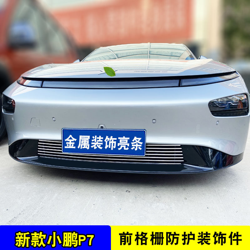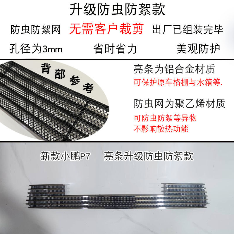 小鹏P7中网外观改装亮条装饰xpeng前杠专用防护配件汽车防虫网