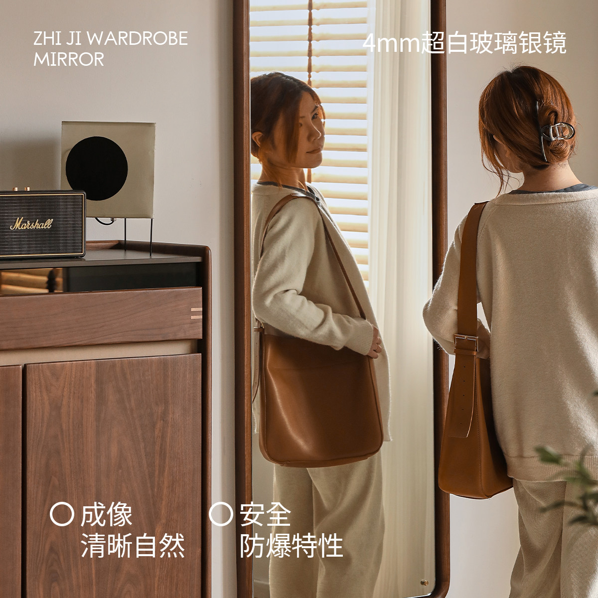 出乎生活知己穿衣镜北欧落地镜黑胡桃木全身镜子可壁挂卧室试衣镜