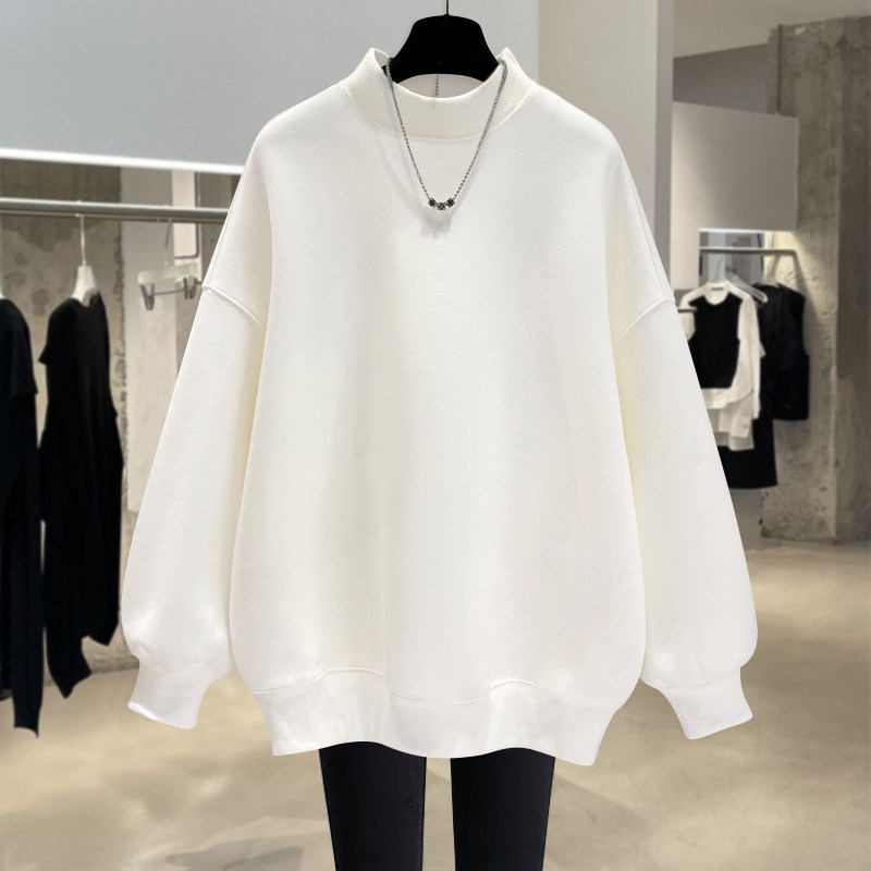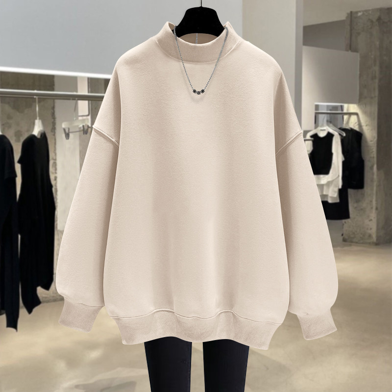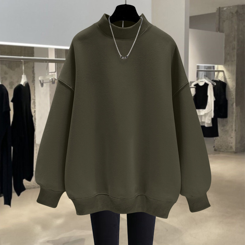 加绒宽松中长款半高领套头卫衣女
