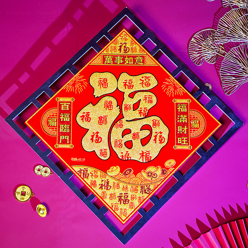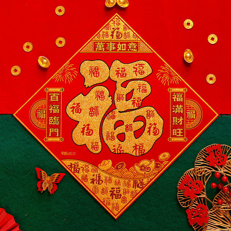 百福字门贴新年新年过年大门客厅带绒布背胶墙贴乔迁装饰门福春节
