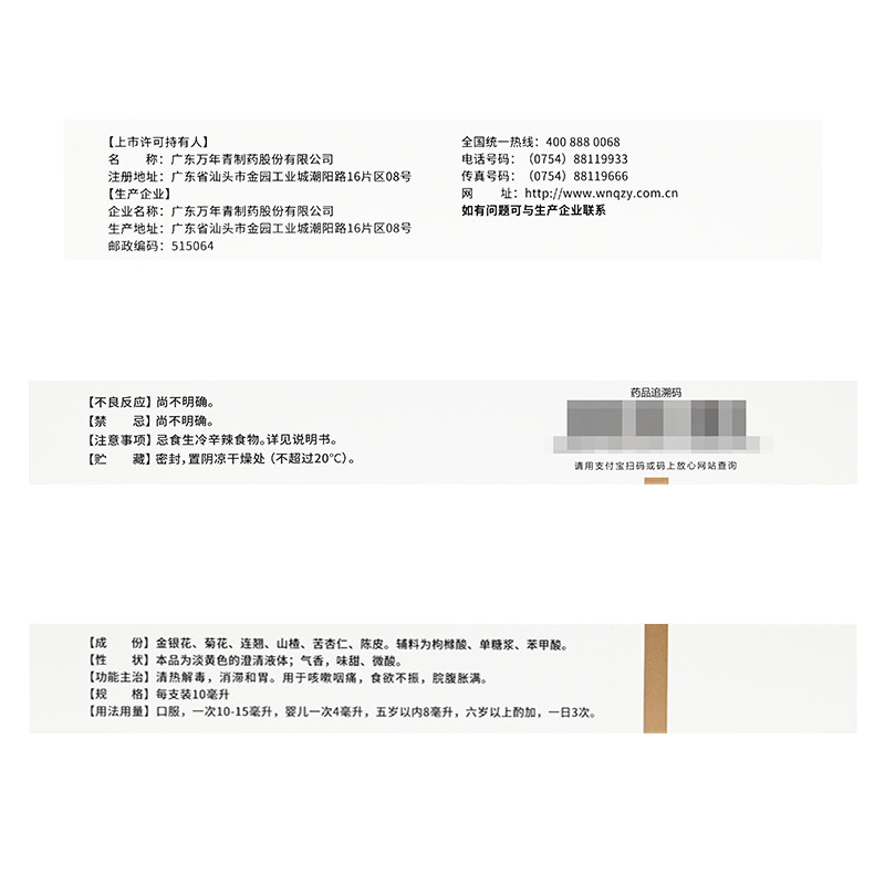 万年青健儿清解液10ml*6支/盒用于清热解毒消滞和胃咳嗽咽痛