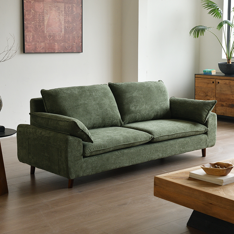 北欧简约布艺沙发小户型复古灯芯绒双人三人直排诧寂风客厅沙发