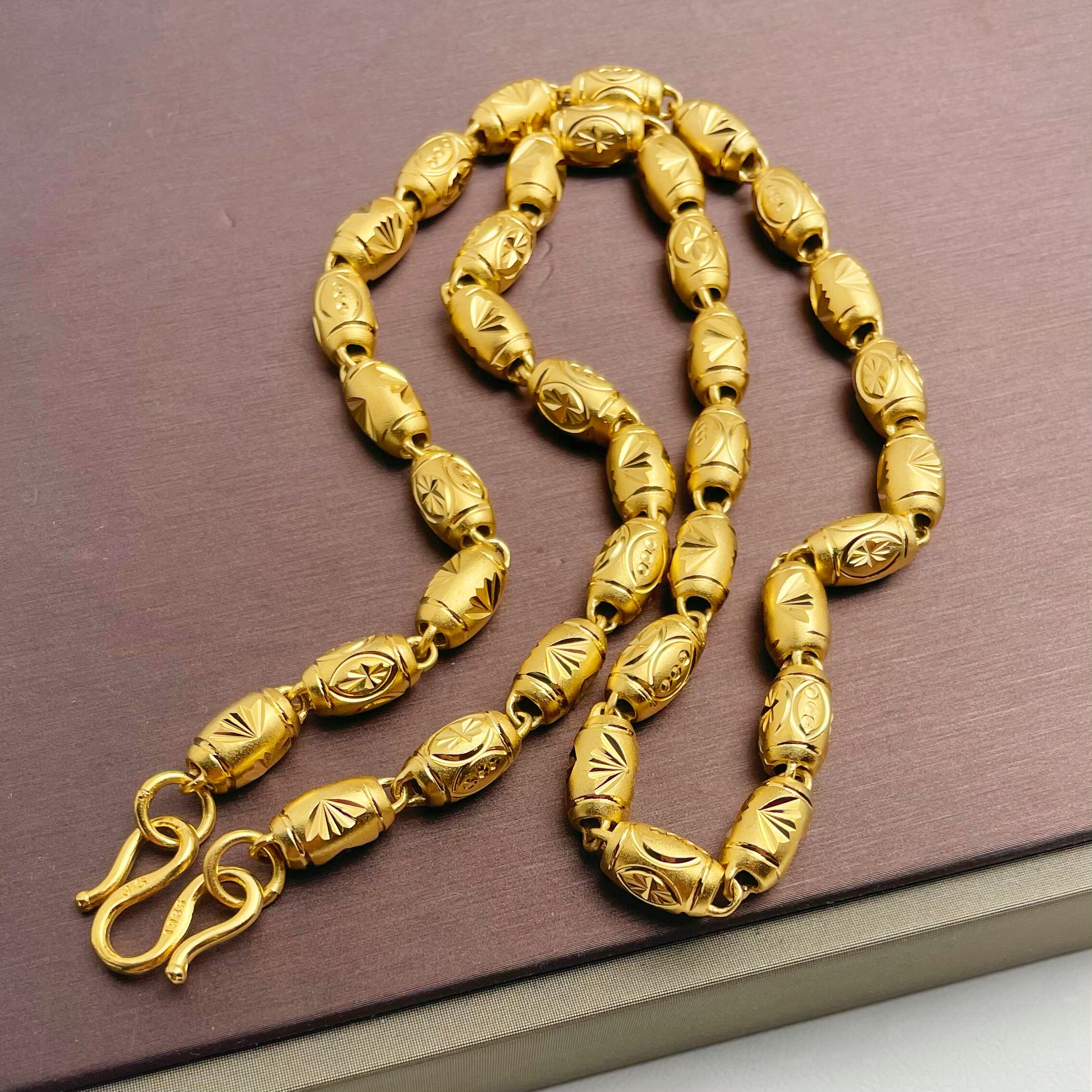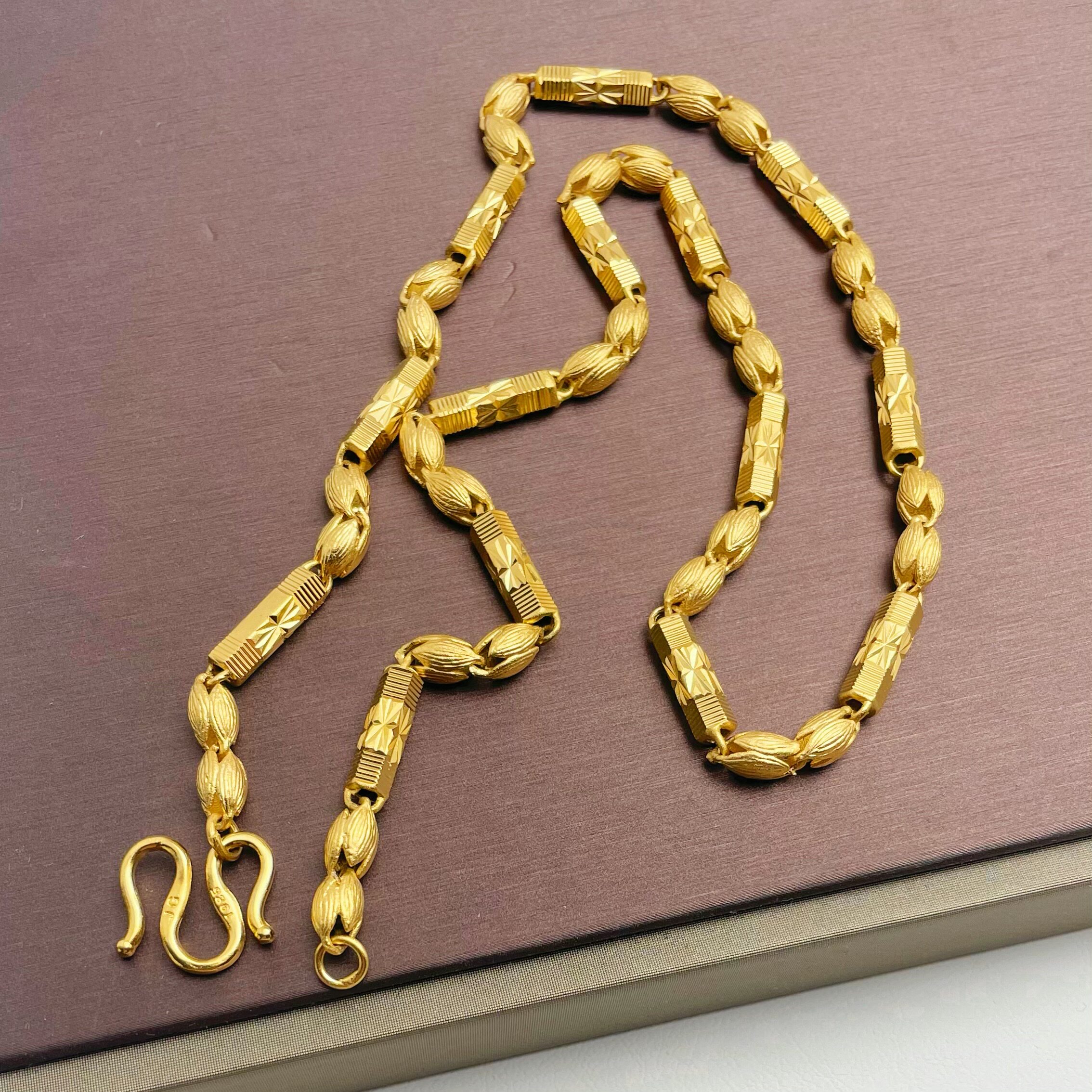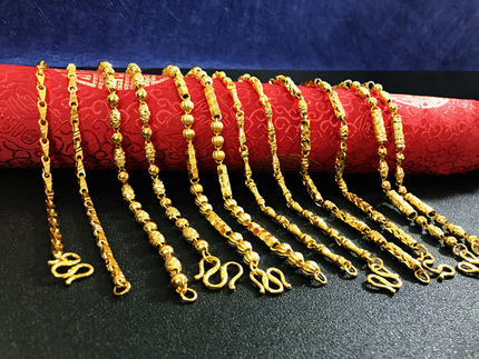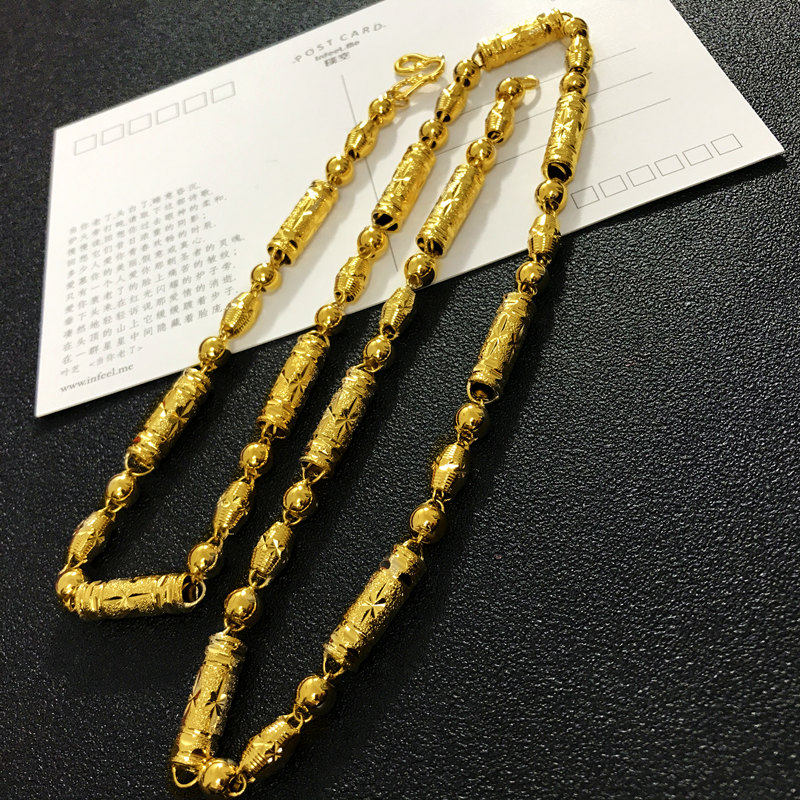 新款时尚沙金珠间筒足金黄金项链素链男款镀金仿金男士项链