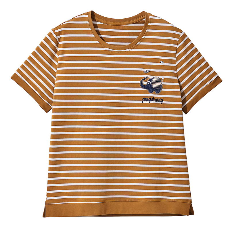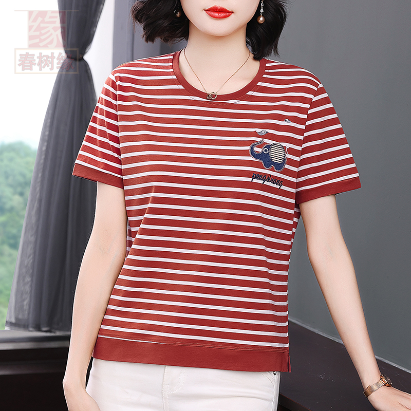 春树缘妈妈纯棉短袖t恤女条纹半袖夏装2025新款中年宽松圆领上衣