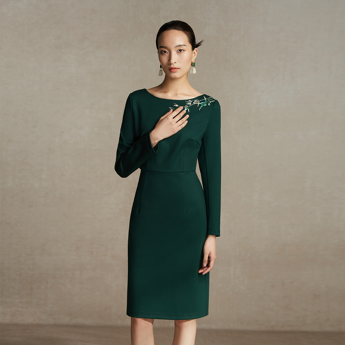 BBLLUUEE粉蓝衣橱东方气质国风感针织连衣裙女2025春秋刺绣礼服裙