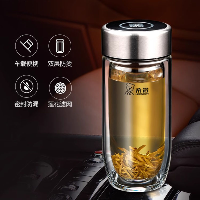 希诺新款双层鹅蛋杯高硼硅玻璃杯子男士女士商务办公泡茶杯水杯