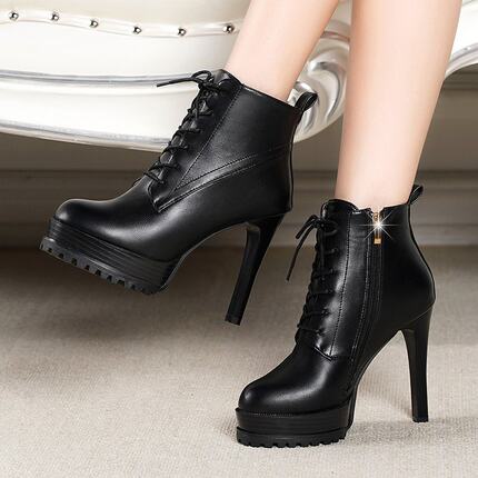 系带瘦瘦靴细跟短靴防水台马丁靴