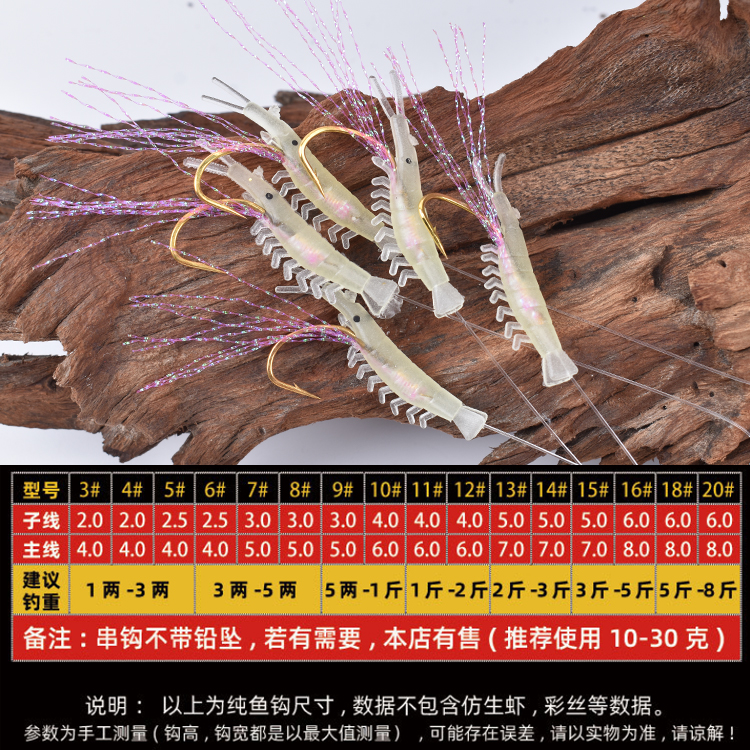 假虾串仿生虾夜光串钩仕挂虾皮海钓路亚船钓荧光虾饵白条翘嘴海钓