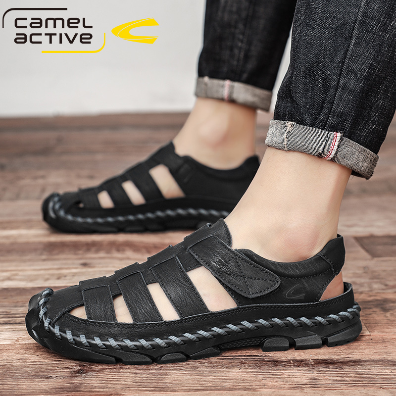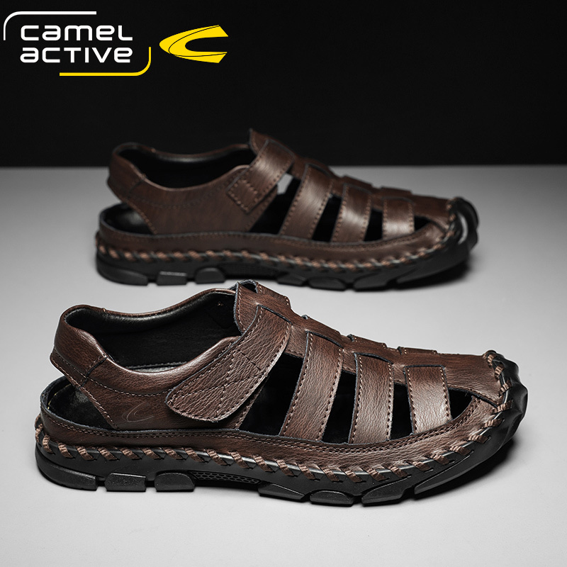 德国骆驼动感男士真皮包头凉鞋夏季透气防滑户外魔术贴沙滩鞋潮流