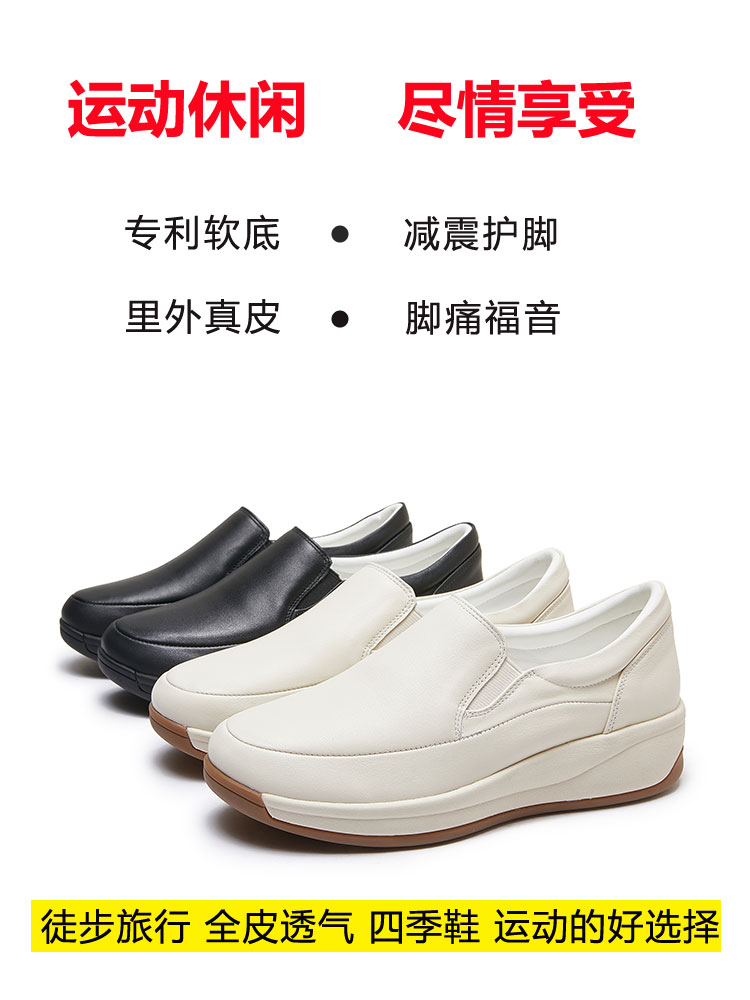 妈妈鞋头层牛皮羊皮舒适健步鞋