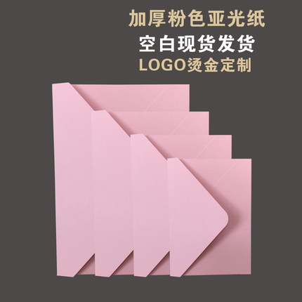 粉色加厚粉红亚光信封雾面哑面珠光纸浅粉浅色请柬喜帖精美高端大气好看商务烫金定制LOGO现货发货