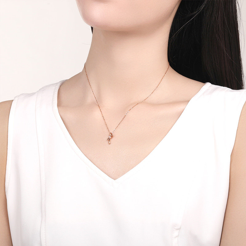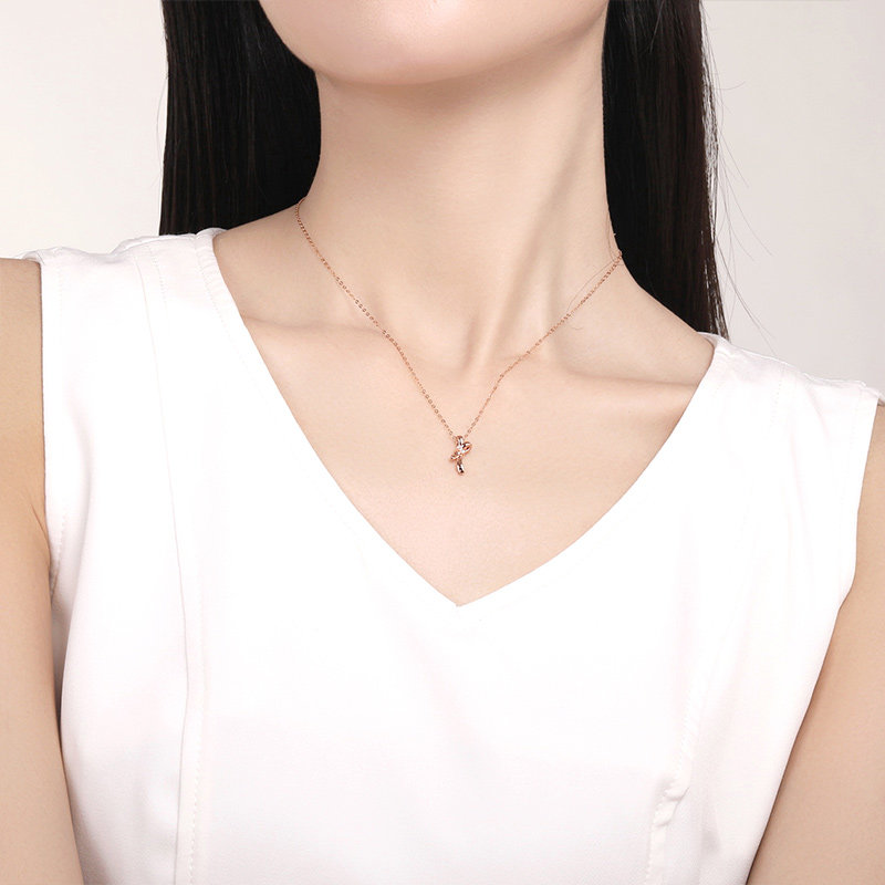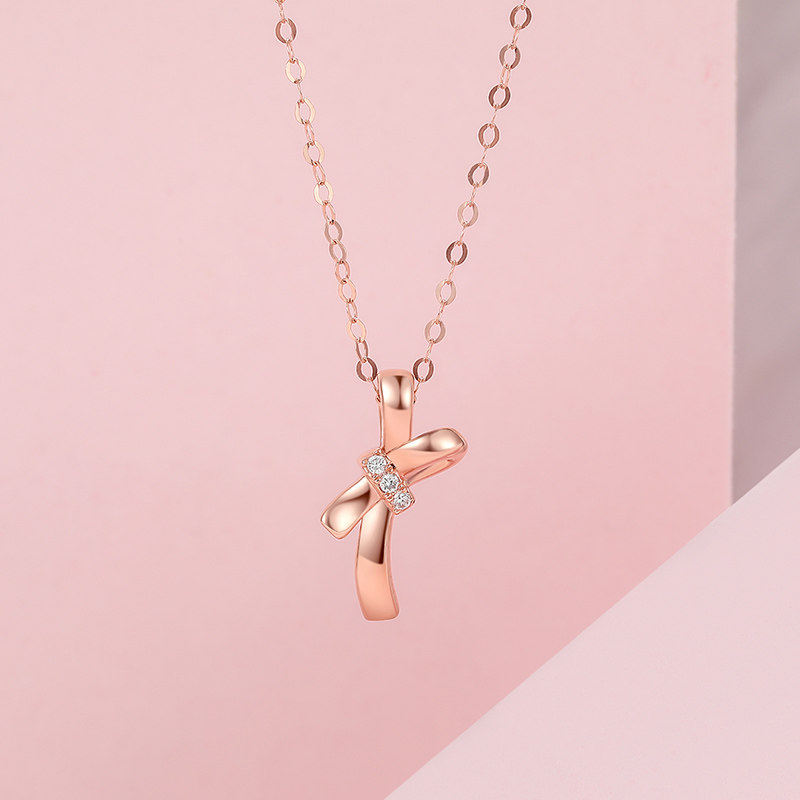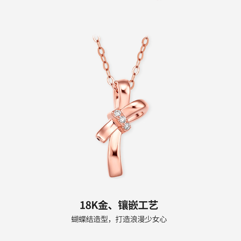 周六福18k金项链女士天然钻石璀璨蝴蝶结au750玫瑰金彩金真钻套链