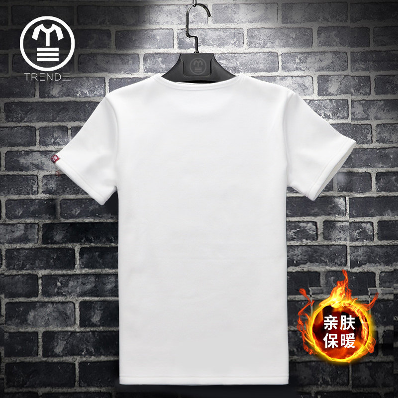 冬季保暖短袖男加绒加厚新款特色大码男士半袖白色打底衫舒适潮流