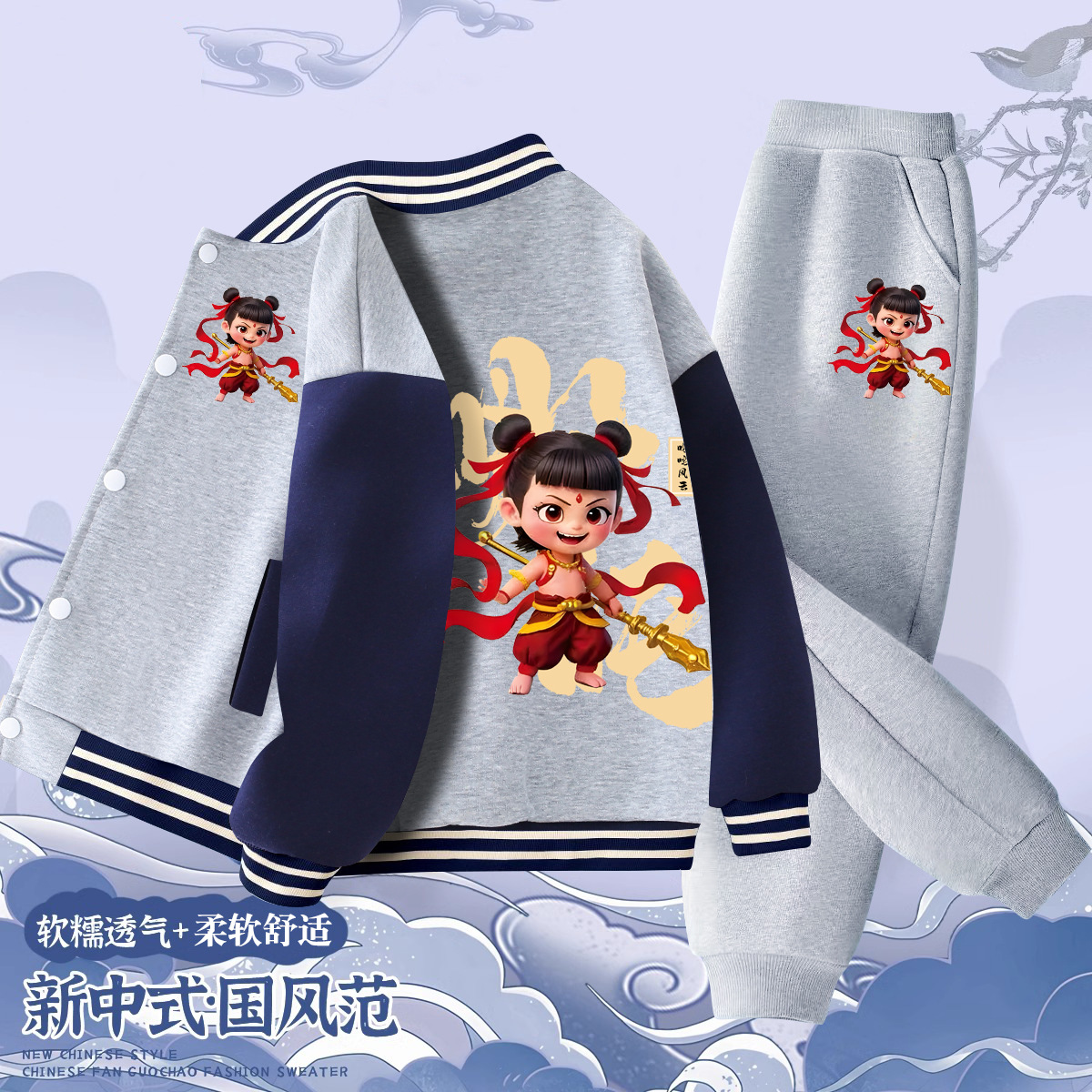 男童两件套装春秋25新款儿童棒球服运动服卡通哪吒印花外套卫裤潮