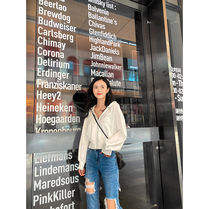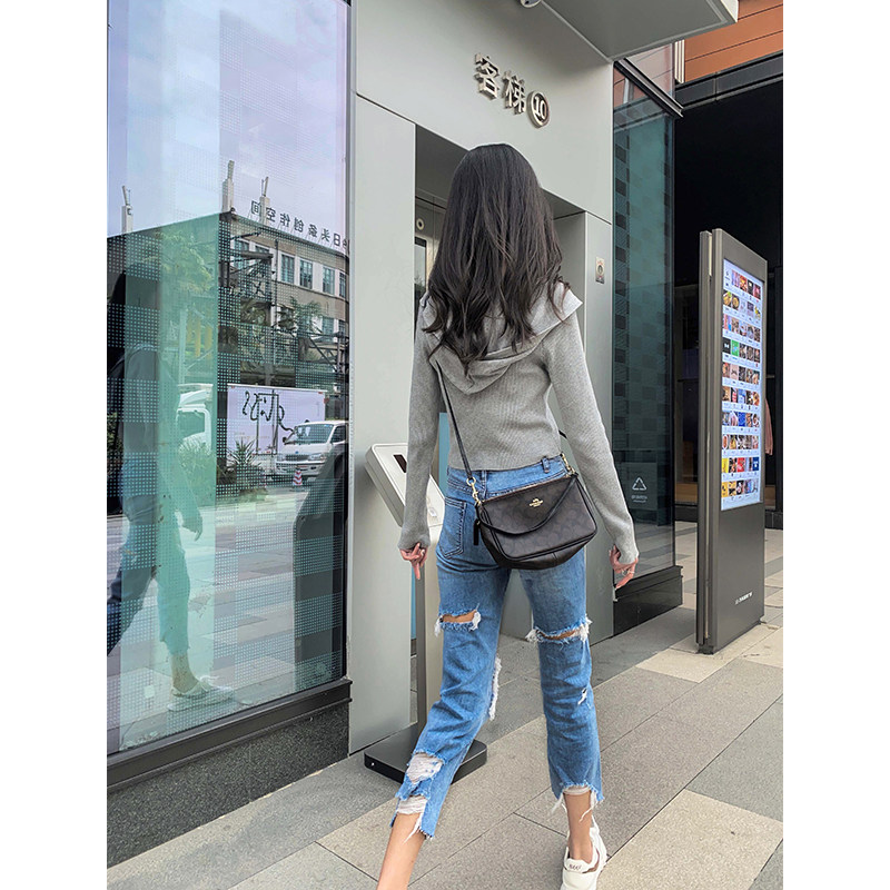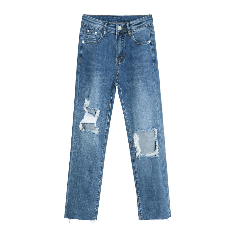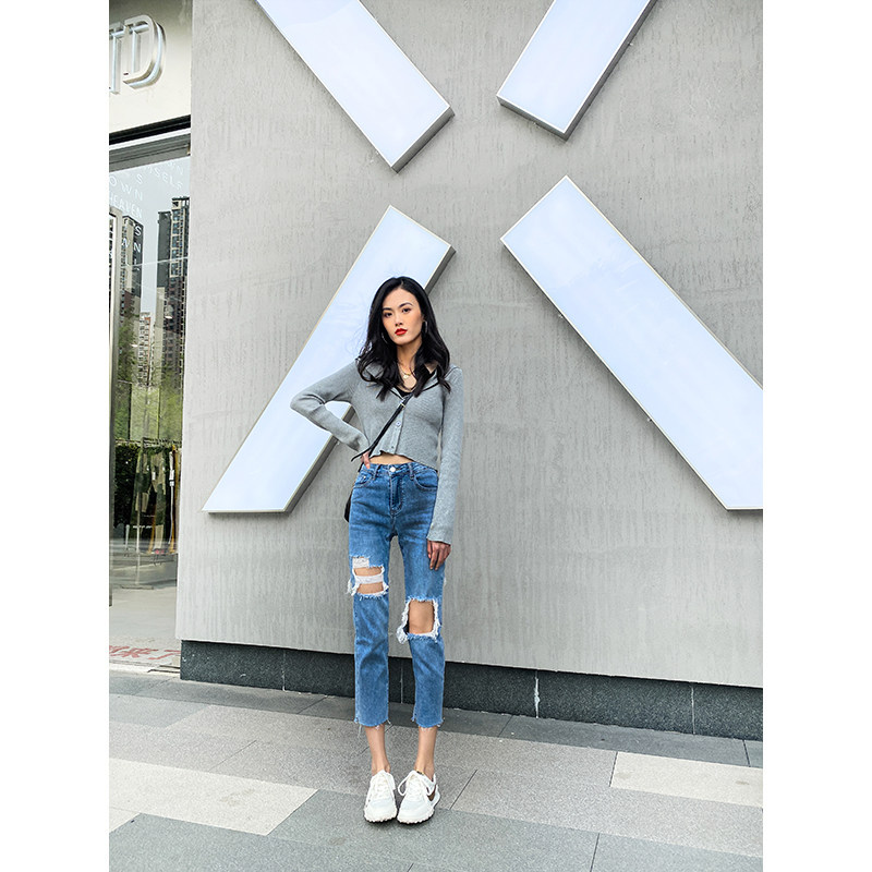 王炸神裤前后破洞直筒牛仔裤女高腰八分夏季薄款显瘦百搭款烟管裤