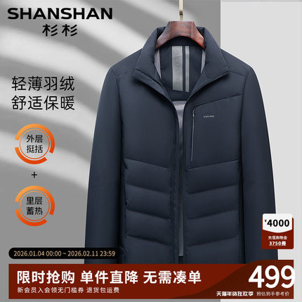 杉杉官方男士羽绒服2025冬季新款翻领商务爸爸装通勤鸭绒轻薄外套