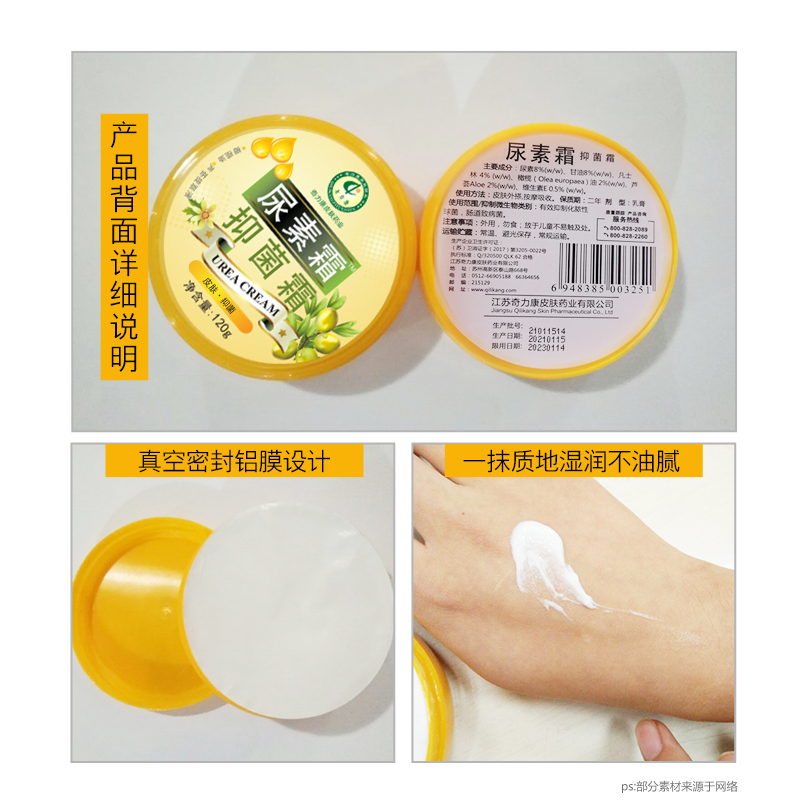 奇力康旗舰店尿素霜抑菌霜内含甘油维生素E橄榄油VE凡士林