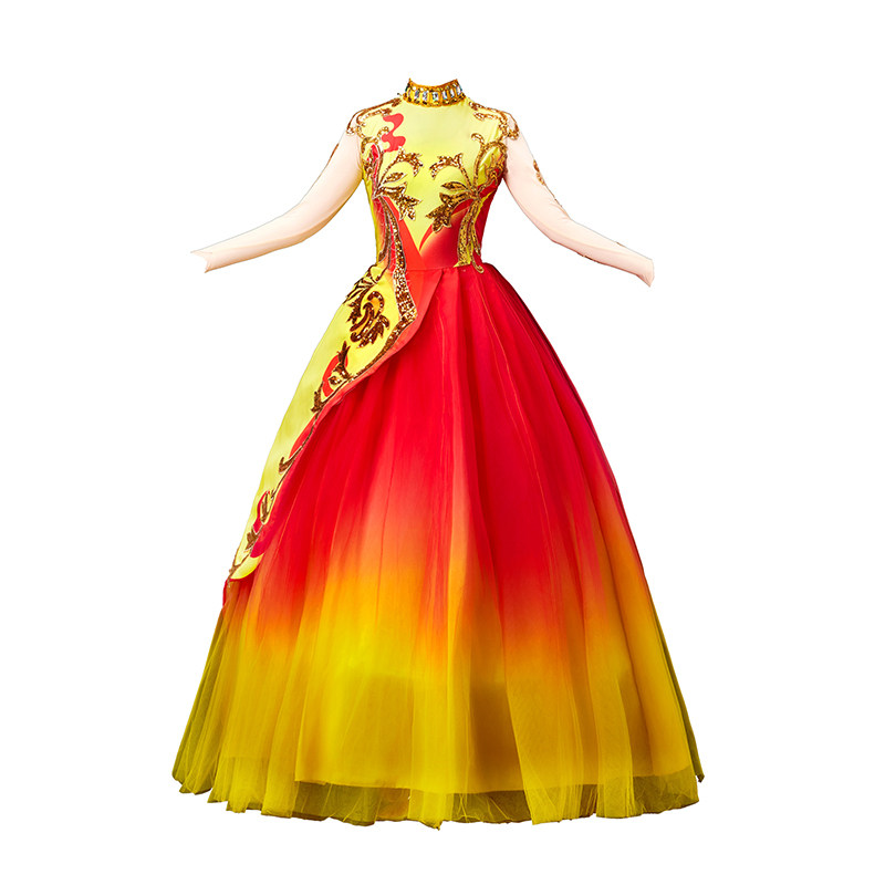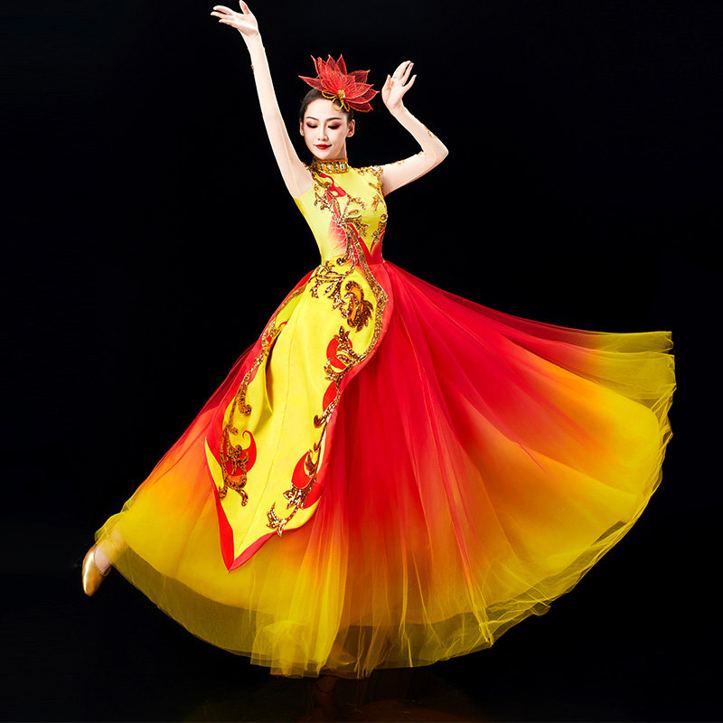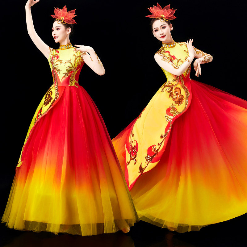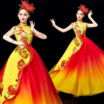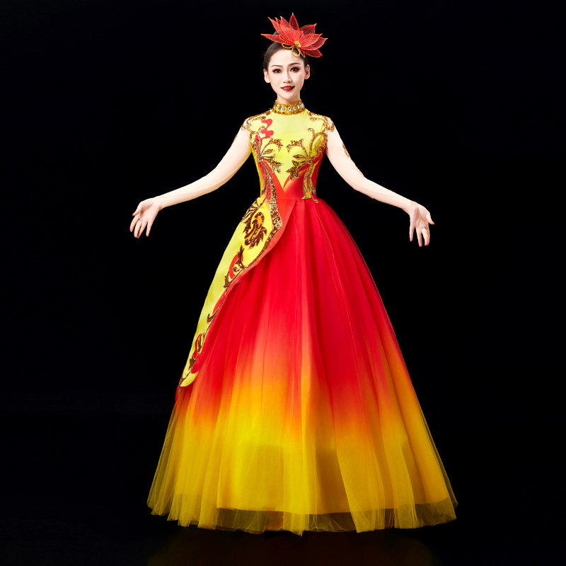 2025新款开场舞大摆裙演出服女大气舞台歌伴舞蓬蓬裙现代舞蹈服装