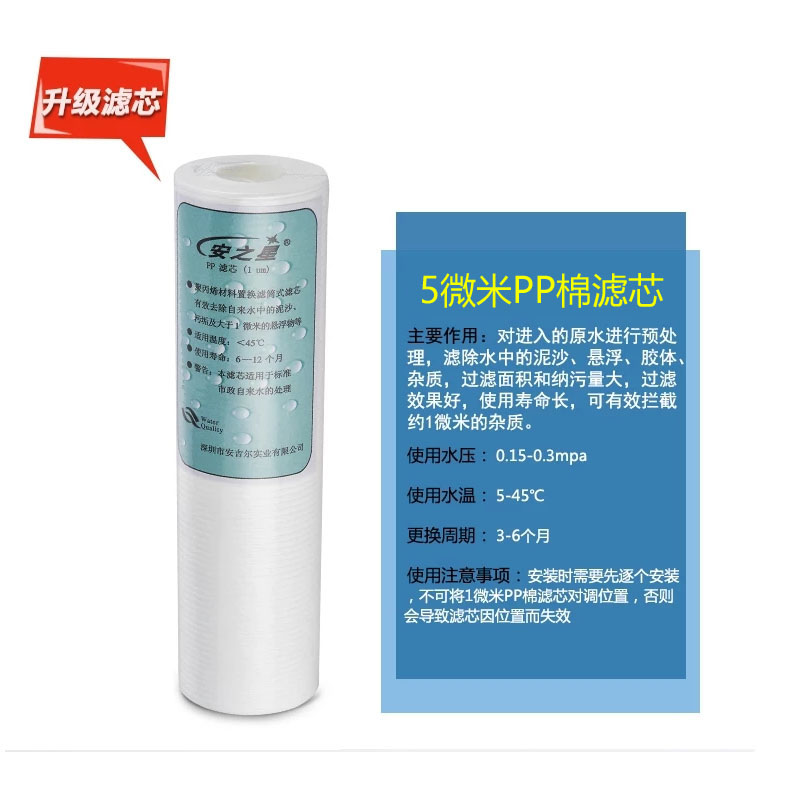 安之星家用净水器纯水机过滤器PP棉滤芯5微米5支装配件厨房平压式