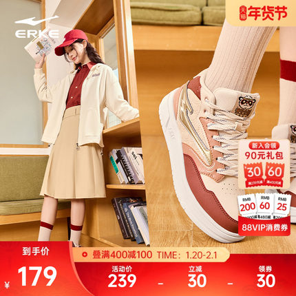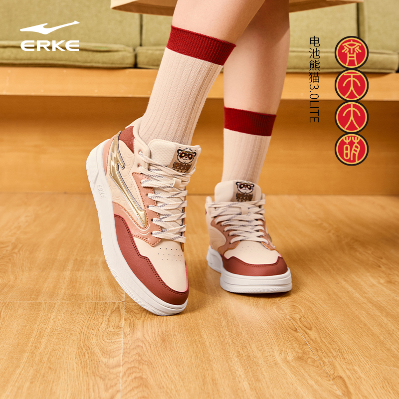 电池熊猫3鸿星尔克板鞋休闲鞋高帮女鞋冬季新款鞋子厚底运动鞋女