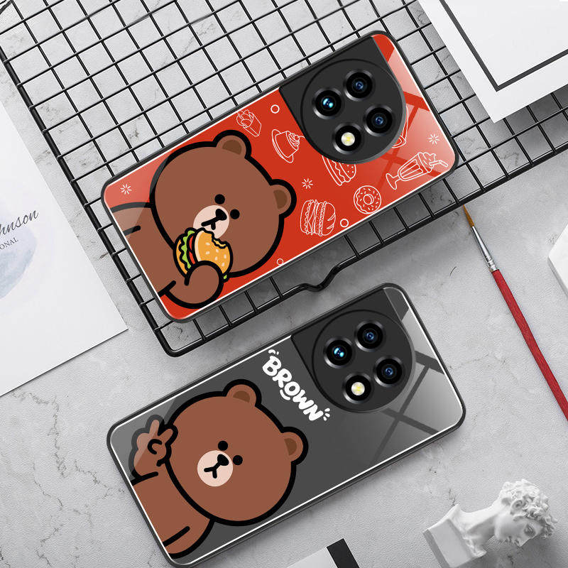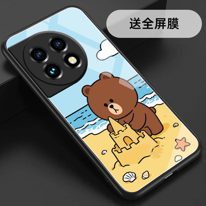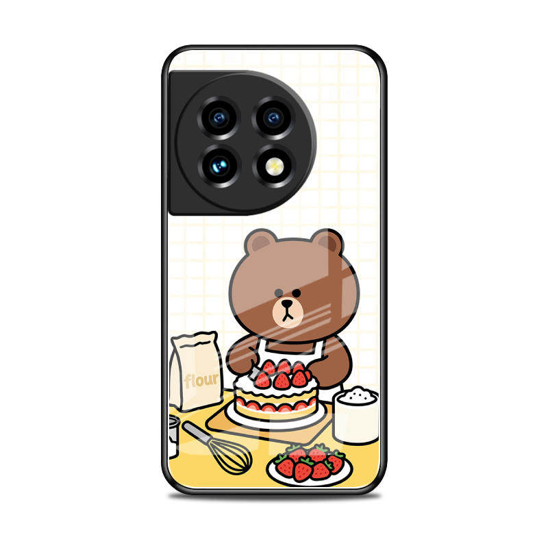 适用一加11玻璃壳手机壳软保护套全包防摔定制薄硅胶布朗熊网红简约高级卡通个性液态女男创意潮时尚情侣直边