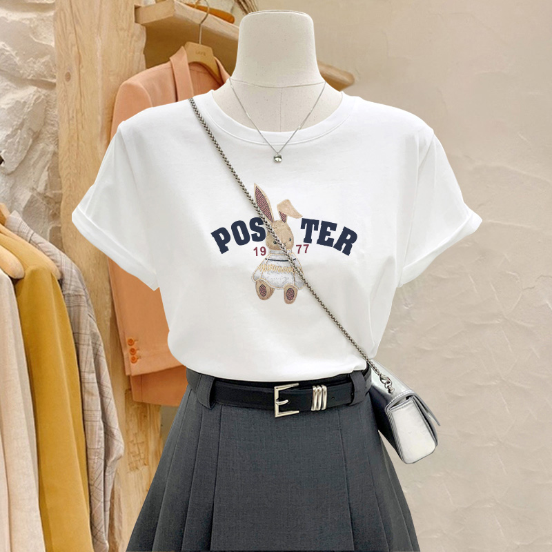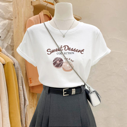 2025夏季新款正肩纯棉短袖t恤女时尚百搭减龄洋气圆领白色上衣潮