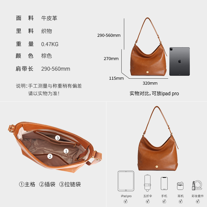 【博主同款】万里马智囊HOBO包女软牛皮腋下包植鞣质感饺子包托特