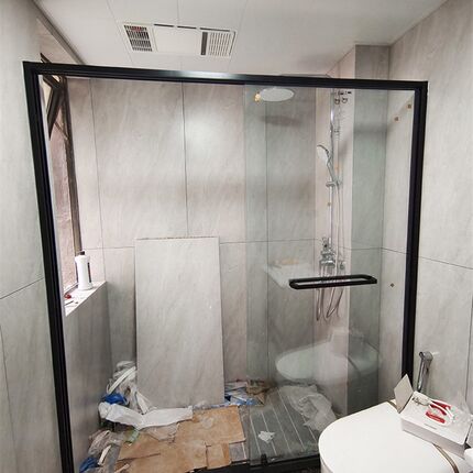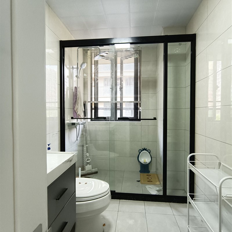 上海简窄框钢化玻璃淋浴房移门 弧形一字型卫生间隔断推拉门定制