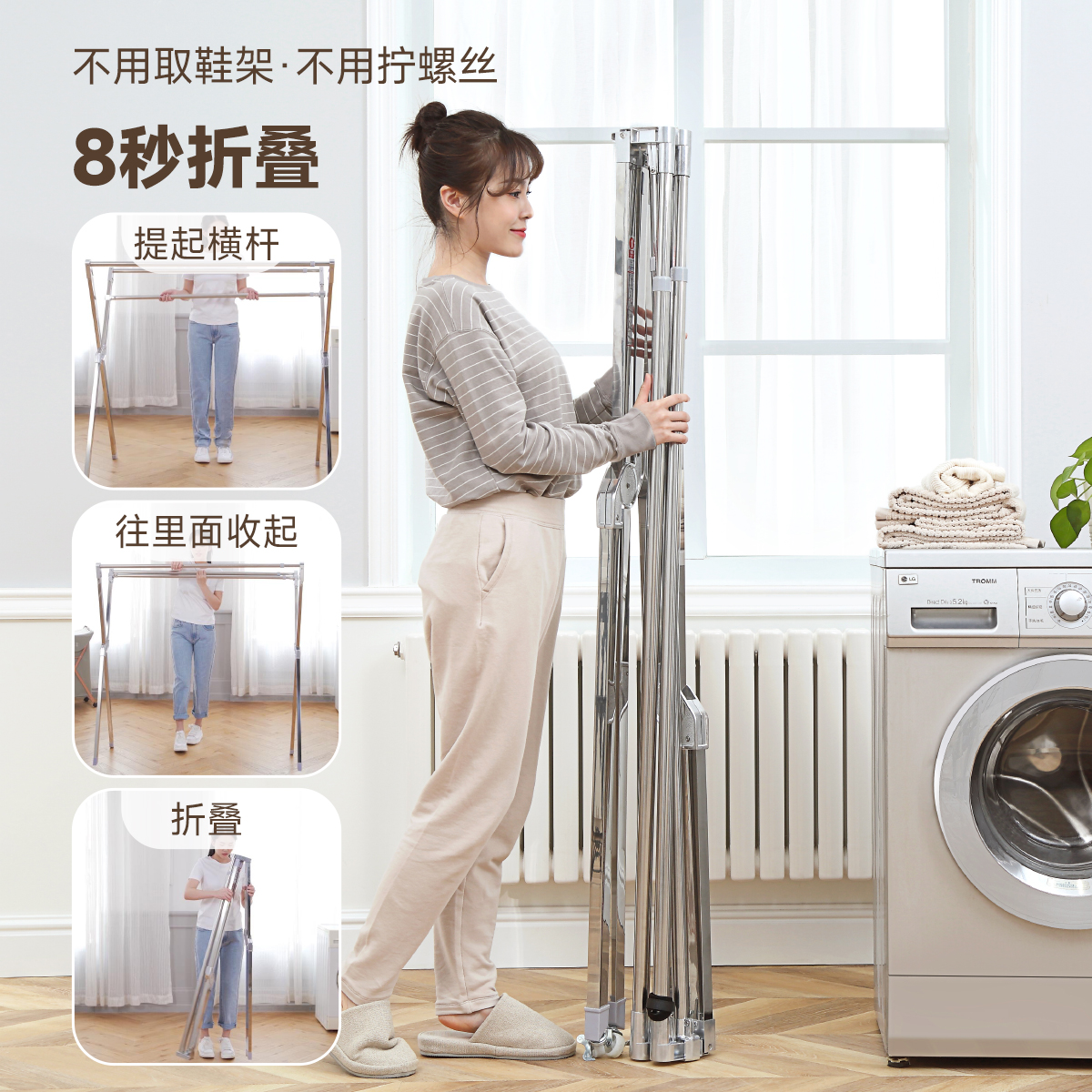 政府补贴晾衣架304不锈钢加粗加厚落地折叠阳台家用室内外伸缩杆