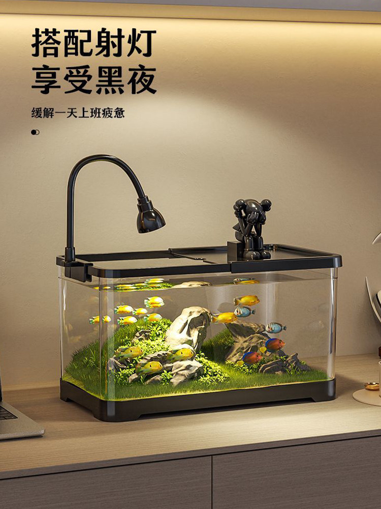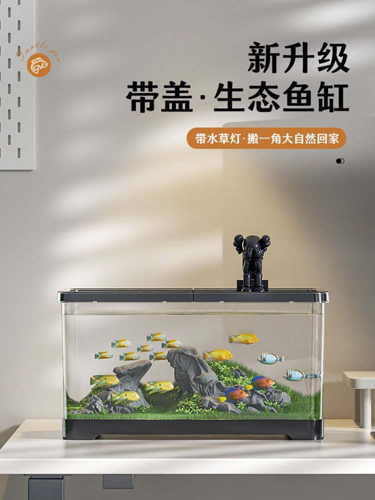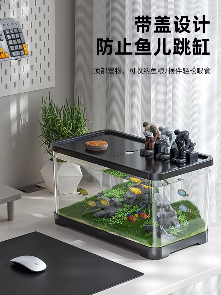 鱼缸水族箱塑料透明亚克力仿玻璃带盖金鱼缸客厅小型造景桌面缸