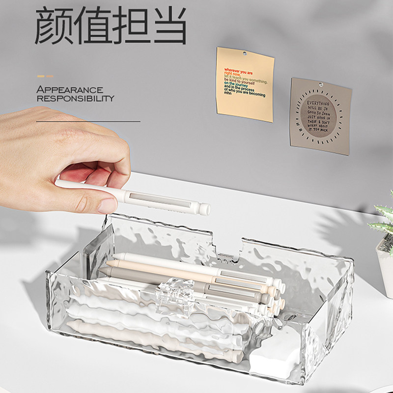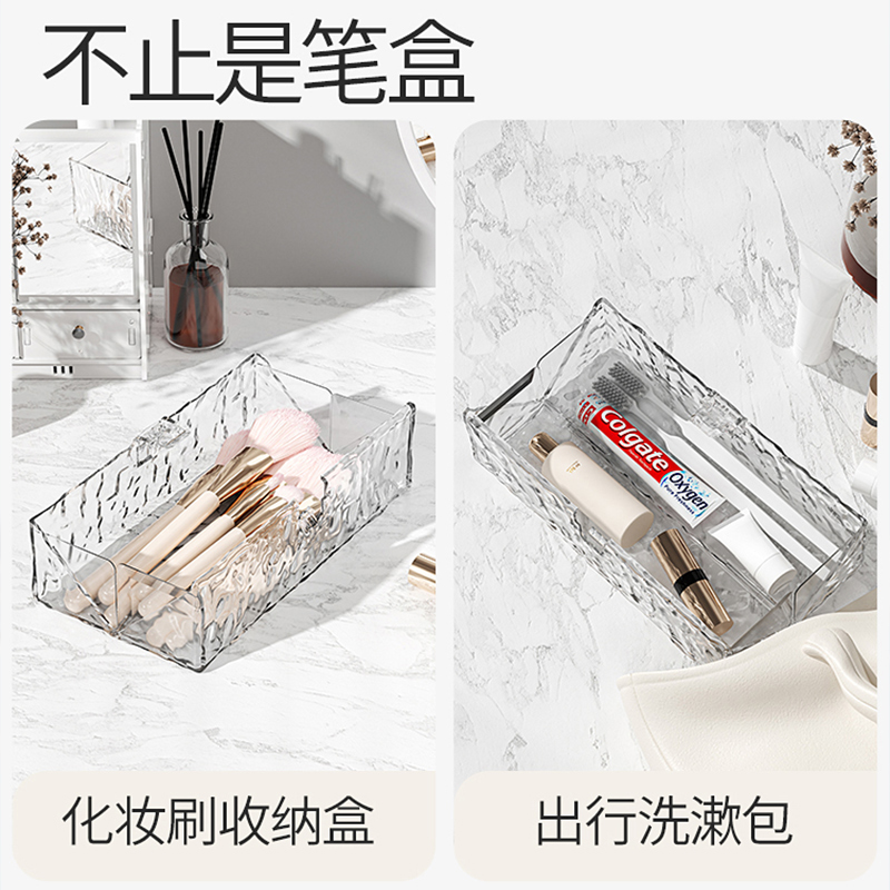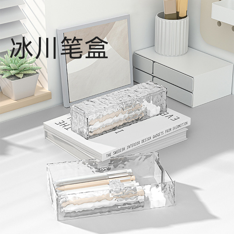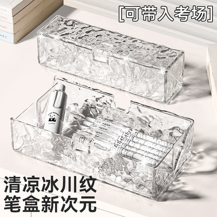 冰川文具盒 ins风极简透明笔盒大容量多功能男女孩学生自动铅笔盒儿童素描画笔美术生用收纳盒高级感网红考试