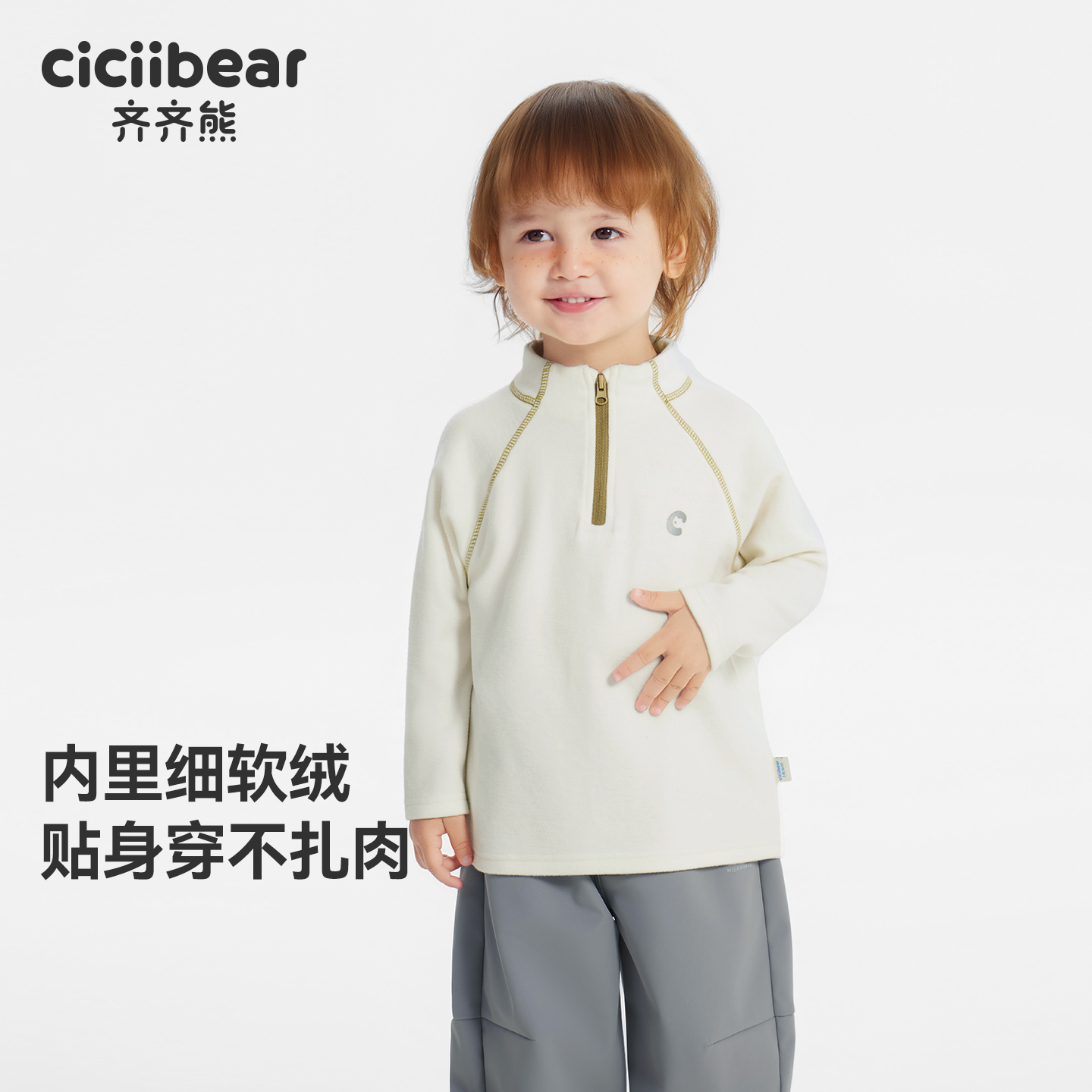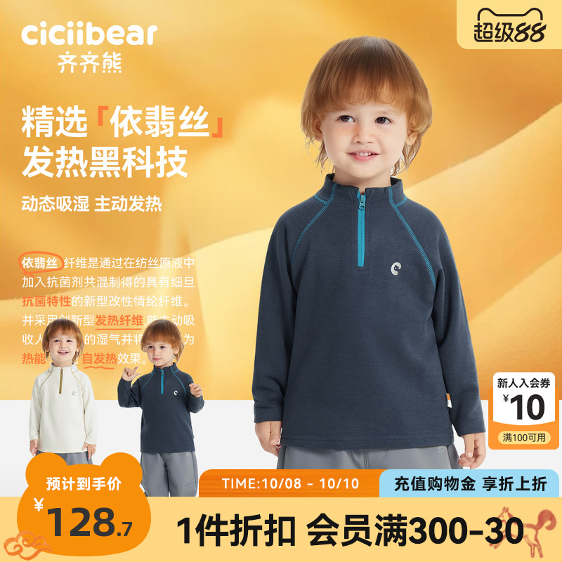 [发热7A抗菌]齐齐熊宝宝t恤长袖男童运动衣儿童打底衫2025新款女
