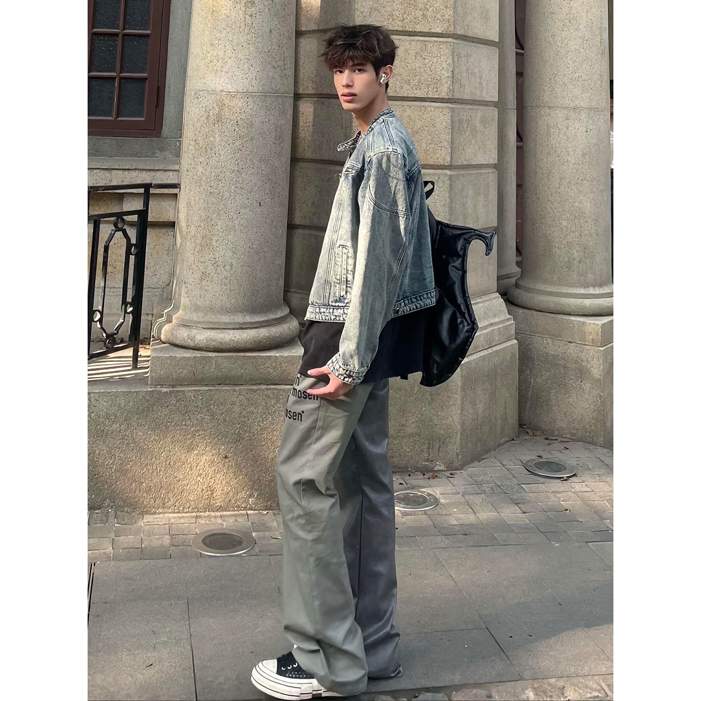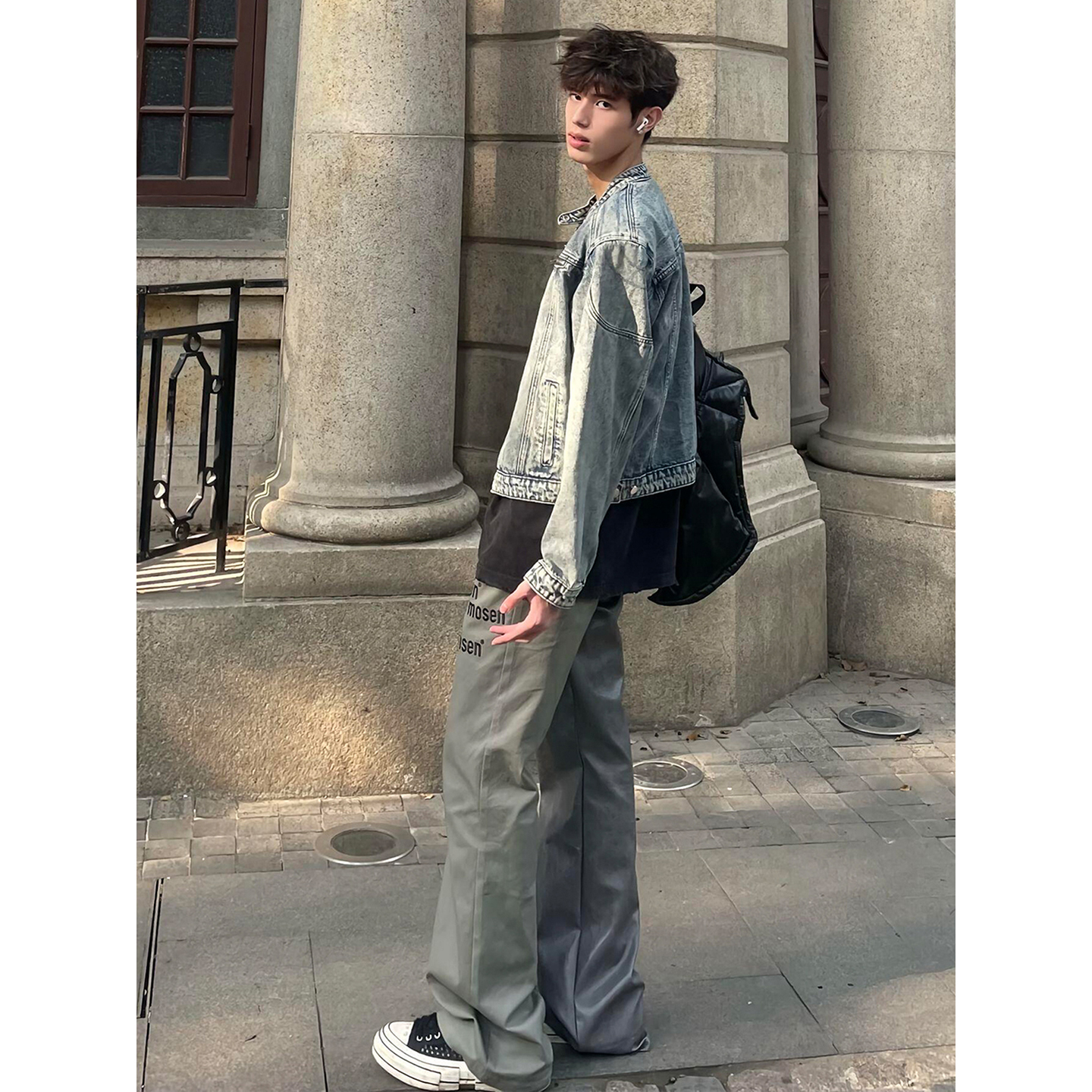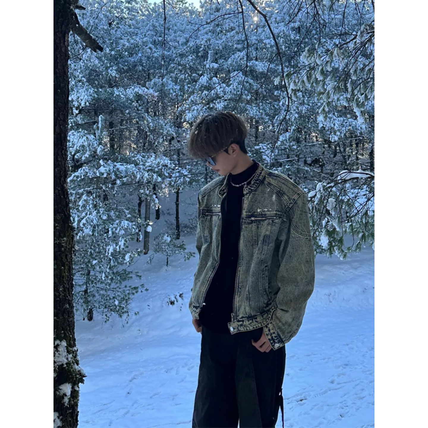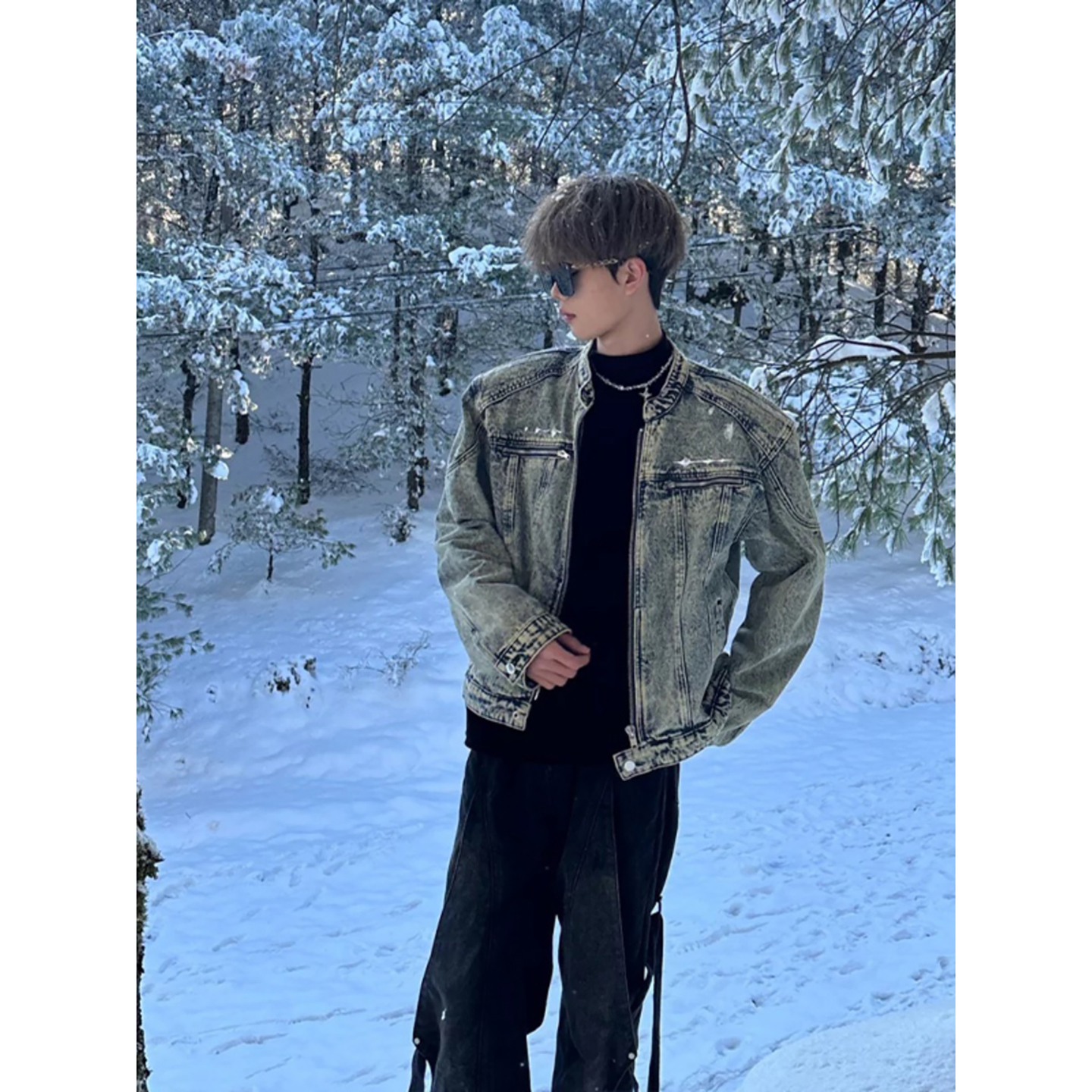 美式短款牛仔外套男款秋季高级感痞帅夹克潮牌欧美街头垫肩牛仔衣