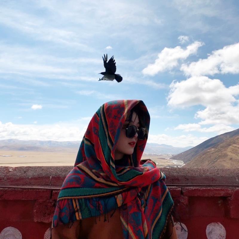 秋冬洋气百搭女士围巾披肩民族风加厚大西藏海茶卡盐湖旅游1010c