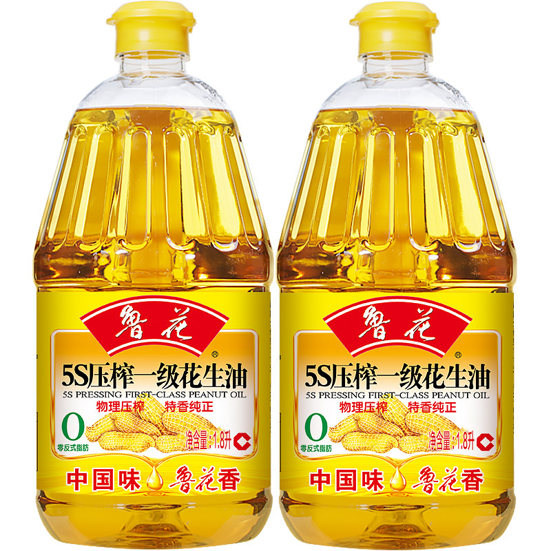 鲁花5S压榨一级花生油1.8L*2 纯正花生油家用食用油商超同款正品