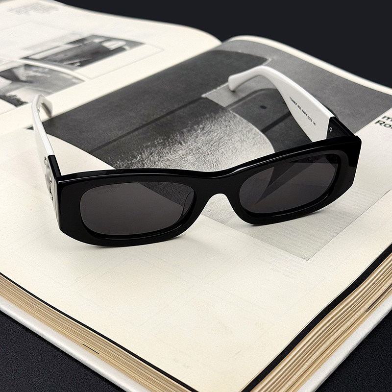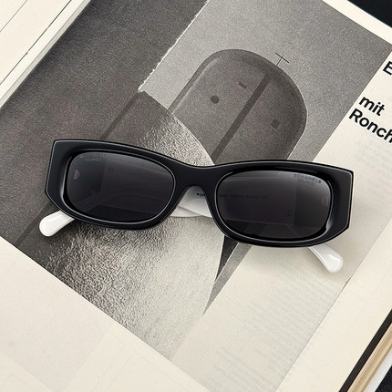 王一博明星同款黑白撞色长方形窄墨镜时尚板材个性太阳偏光眼镜酷