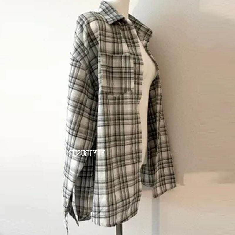热销 Onoev LB580慵懒~复古气质女人味宽松休闲格子衬衫