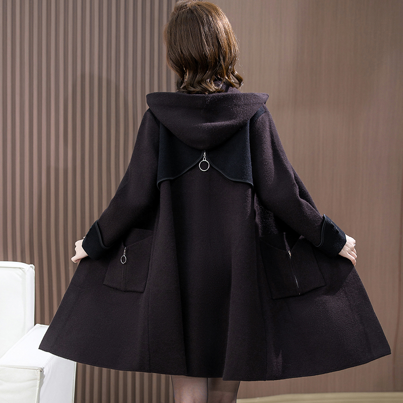 黑色毛呢外套女中长款韩版2025新款秋冬胖人mm连帽宽松洋气厚大衣