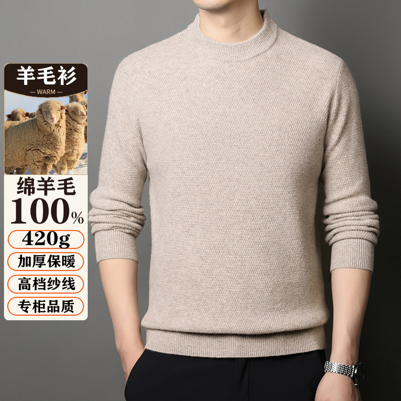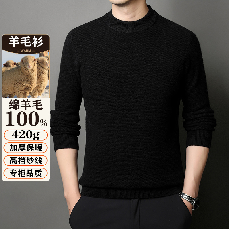 男士羊毛衫秋冬商务休闲简约纯色加厚半高领打底保暖套头针织衫