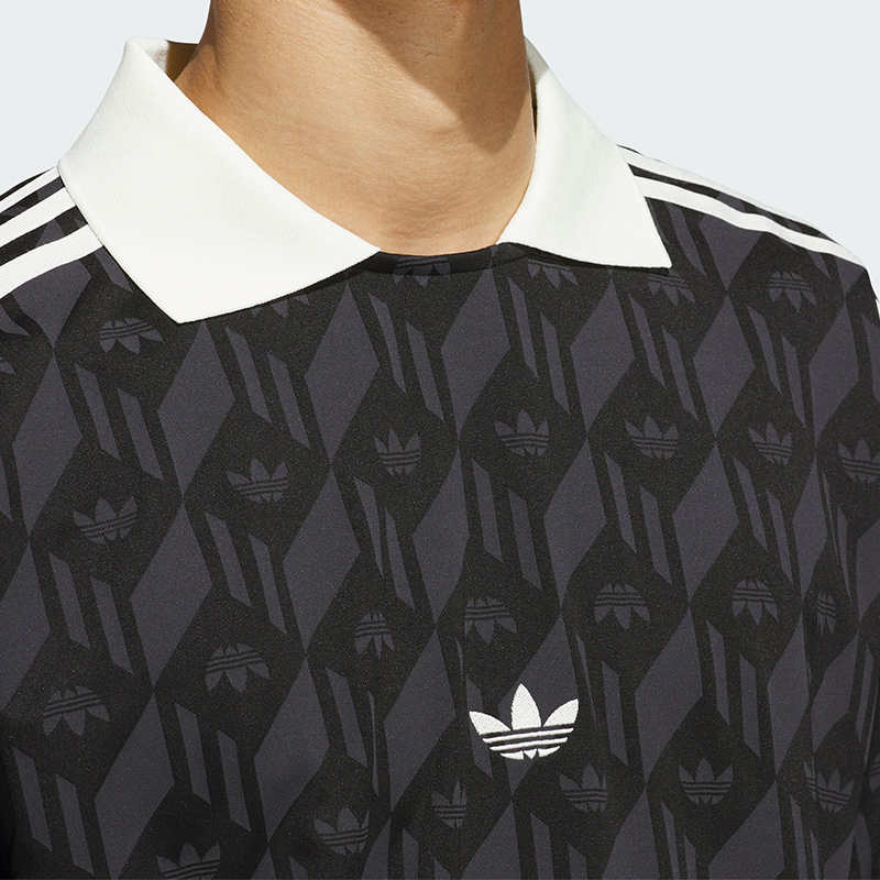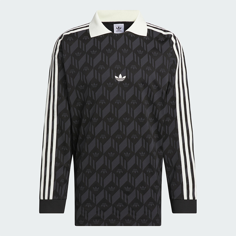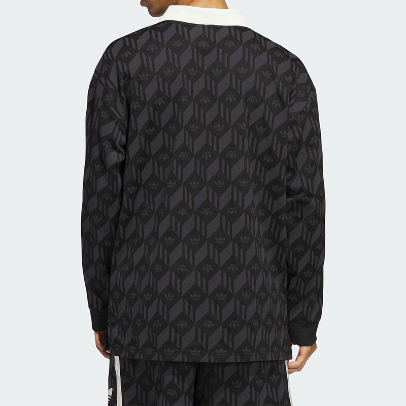 阿迪达斯三叶草男女装2025夏季满印POLO衫宽松舒适长袖T恤 JD5196