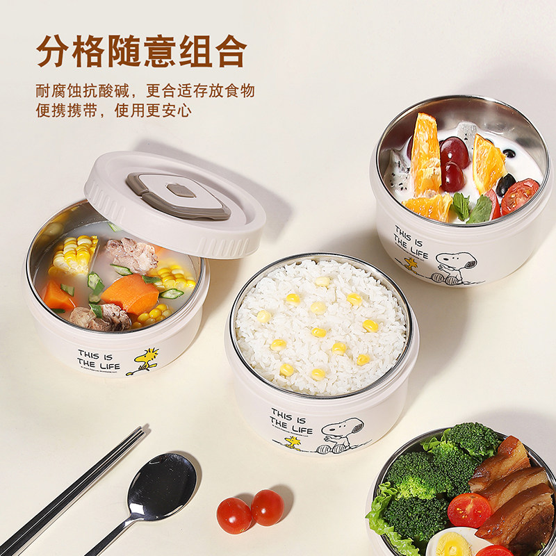 史努比饭盒新款316L不锈钢上班族学生便携可微波炉加热便当盒餐盒