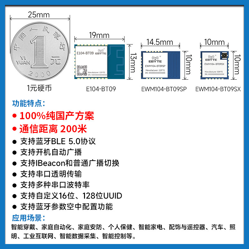 BLE5.0蓝牙转串口模块低功耗无线数传原装TLSR8208B方案iBeacon
